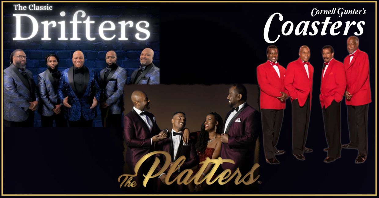 Step into the timeless celebration of rhythm & soul as three of music's most beloved vocal groups join forces for an unforgettable holiday concert!! From the silky harmonies of The Platters to the playful, energetic showmanship of The Coasters, and the sweeping catalog of romantic R&B from The Classic Drifters - this is an evening that transcends time!!